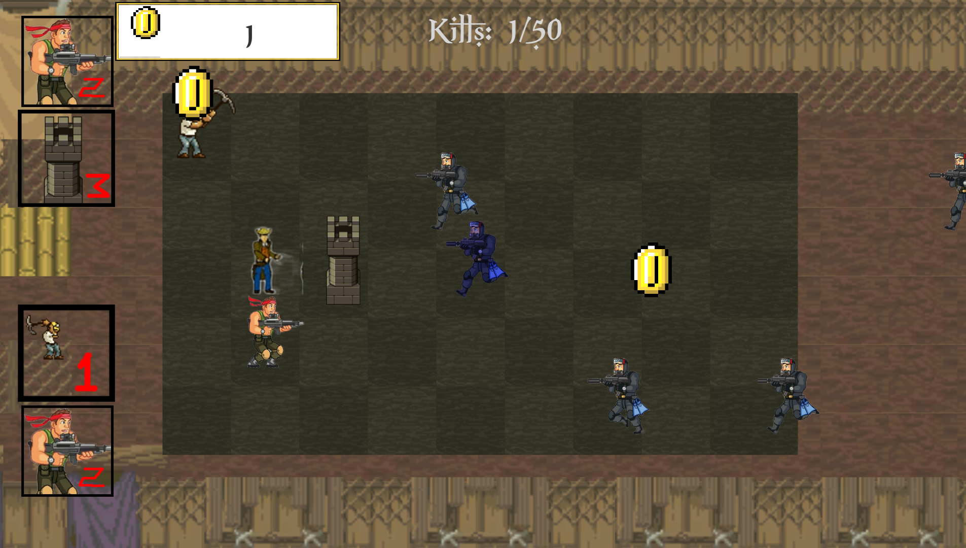 Inspired by Plants vs. Zombies, this is a 2D side-lane defense game where you manage your resources, recruit fighters, and fend off endless waves of enemy troops. Think less “sunflowers,” more “gunmen with bandanas.”